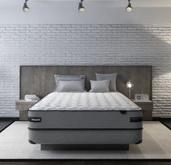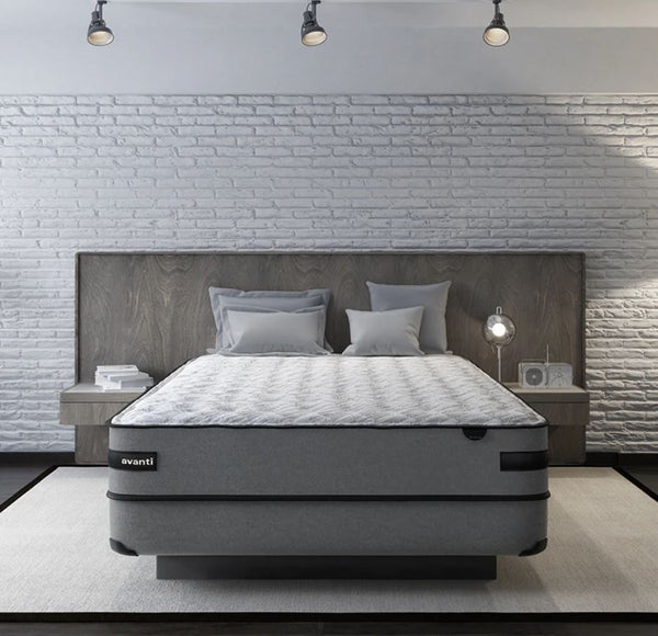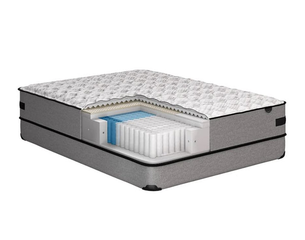 Matelassé fait de mousse convolutée 1,5 pouces et fibre cachemire. Mousse confort avec latex écologique. Mousse de soutien de 1 pouce. Contour de mousse rigide perforé pour une ventilation 360°. 1020 ressorts ensachés faits en acier avec renforcement central pour un soutien parfait. Matelas sans rotation.