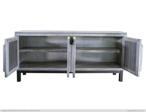 Buffet Cosala de 68" par IFD International. PTR:097436 La combinaison d'un attrait rustique et transitionnel est un ajout élégant à votre espace. Fait de pin massif à100% pin massif vieilli, avec...