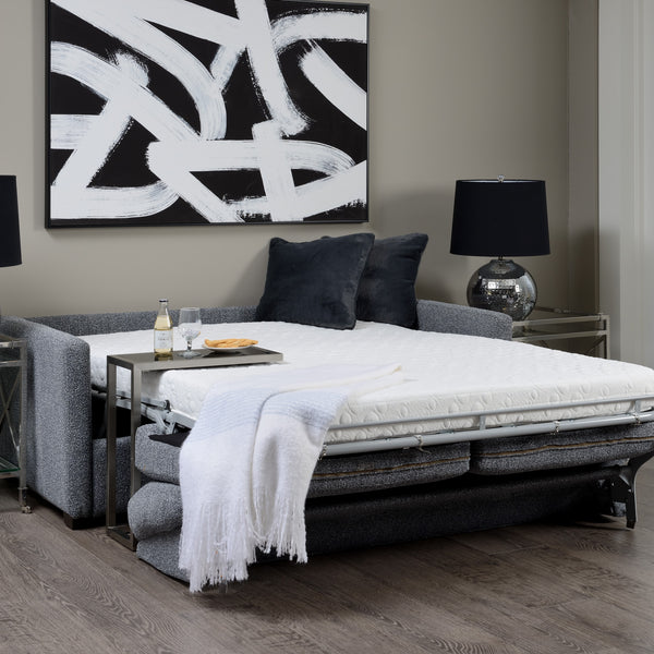 Son principe combine, un sofa élégant et stylé, à une plate-forme de lit pliant qui se déroule en une étape facile. Son matelas de mousse gel, vous procures un confort couché comme dans votre lit et une fois fermé, vous ne pourriez savoir qu'il cache un lit tellement il est confortable.