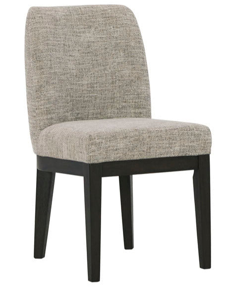 Habillée pour impressionner. Cette chaise de salle à manger sans accoudoirs tout simplement époustouflante, offre un look haut de gamme à un prix terre-à-terre. Ses lignes droites accentuées par un fini chêne brun ciré donneront envie de la regarder. Rembourrée pour un maximum de confort, elle est recouverte avec un tissu neutre semblable à du tweed. Le design du dossier aux contours doux est conçu sur mesure pour le confort. Qu'il fasse partie d'un arrangement de salle à manger ou qu'il soit utilisé comme siège d’appoint, son look intemporel est fait pour durer.