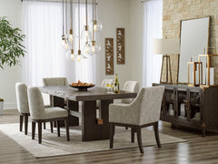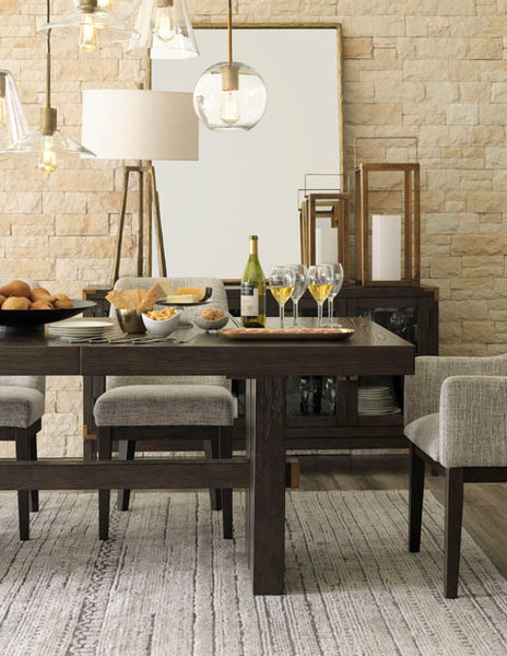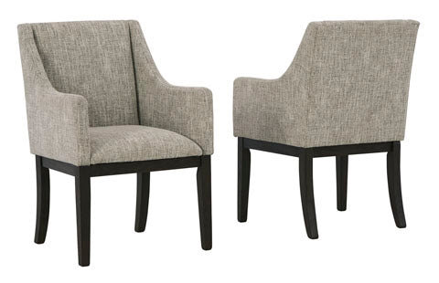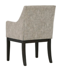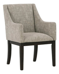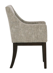 Habillée pour impressionner. Cette chaise de salle à manger avec accoudoirs tout simplement époustouflante, offre un look haut de gamme à un prix terre-à-terre. Ses lignes droites accentuées par un fini chêne brun ciré donneront envie de la regarder. Rembourrée pour un maximum de confort, elle est recouverte avec un tissu neutre semblable à du tweed. Le design du dossier aux contours doux est conçu sur mesure pour le confort. Qu'il fasse partie d'un arrangement de salle à manger ou qu'il soit utilisé comme siège d’appoint, son look intemporel est fait pour durer.