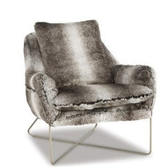 Chaise d'appoint contemporaine au siège en fausse fourrure inspirée du design scandinave.