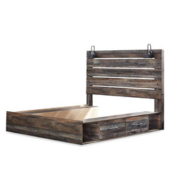 Lit King Drystan de Ashley avec lumières intégrées, rangement et prises USB. Lorsqu'ils sont fusionnés de la bonne manière, les styles rustiques et industriels peuvent faire un mariage heureux. Exemple...