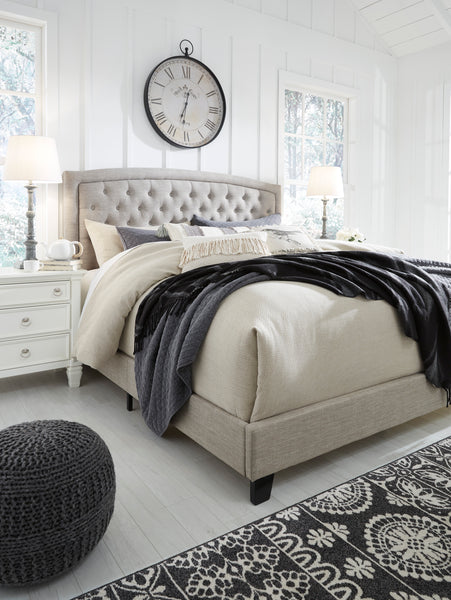 Préparez le décor pour une chambre paradisiaque à un prix terre-à-terre, grâce à ce lit rembourré. Le revêtement gris clair ornant la tête de lit capitonnée, arbore un tissage texturé qui donne une sensation fraîche et actuelle. Le pied de lit et les rails sont également habillés de tons gris froids.