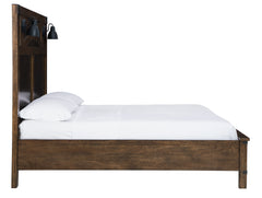 Les caisses bien proportionnées comportent des tiroirs entièrement finis avec une construction en queue d'aronde et des glissières latérales à roulement à billes. Poignées de barre en bois conçues sur mesure avec des passants en métal. La table de nuit comprend une alimentation 110 V avec deux ports de charge USB. Les tiroirs supérieurs ont des fonds en feutre noir.
