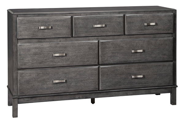 Bureau à sept tiroirs en bois gris de style contemporain.