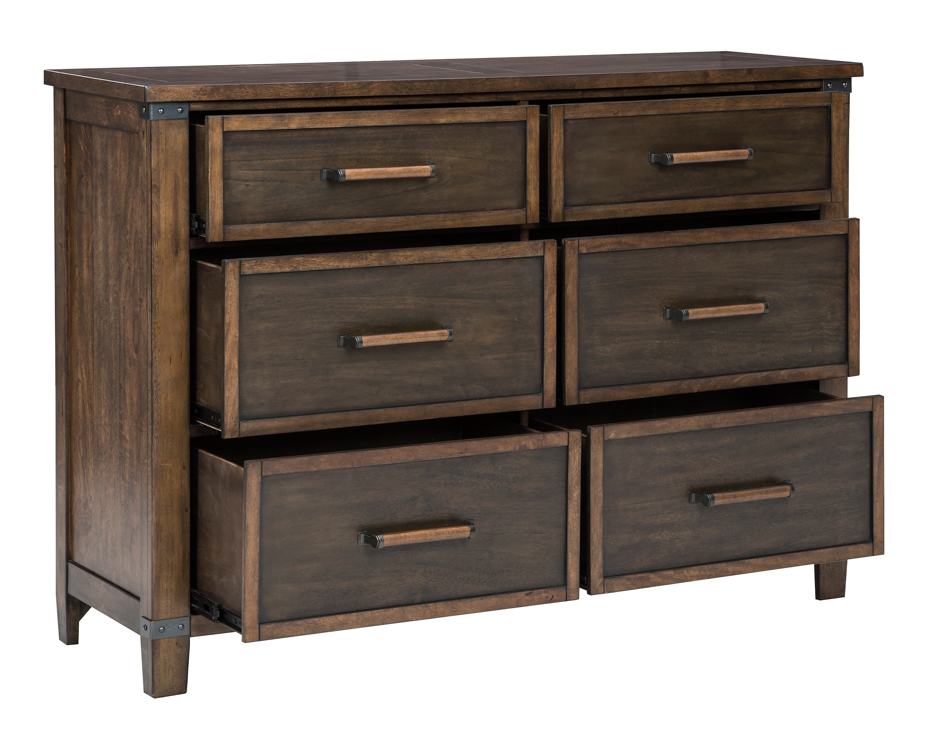 Voici la nouvelle interprétation du style de vie décontracté. Inspirée de l'artisanat, allie des détails distinctifs tels que des accents de coin en métal et des tiroirs coulissants pour une esthétique facile à vivre. Ceux qui apprécient la beauté du bois seront doublement impressionnés par la finition bicolore noyer et terre d'ombre brûlée qui confère un niveau de raffinement supplémentaire. Fabriqué en bois massif et placage de manguier.