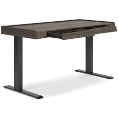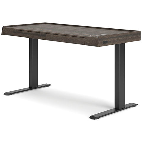 Créez un bureau à domicile résolument moderne avec ce bureau à hauteur réglable. Son riche motif de grain de bois brun foncé confère à ce bureau un air de raffinement, tandis que les deux tiroirs gardent les éléments essentiels de l'espace de travail organisés. Les positions de hauteur programmables, ainsi que le chargement USB, USB-C et sans fil, complètent cette pièce contemporaine aux lignes sobre.