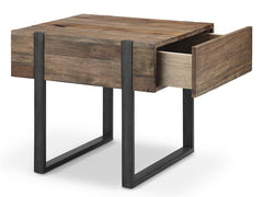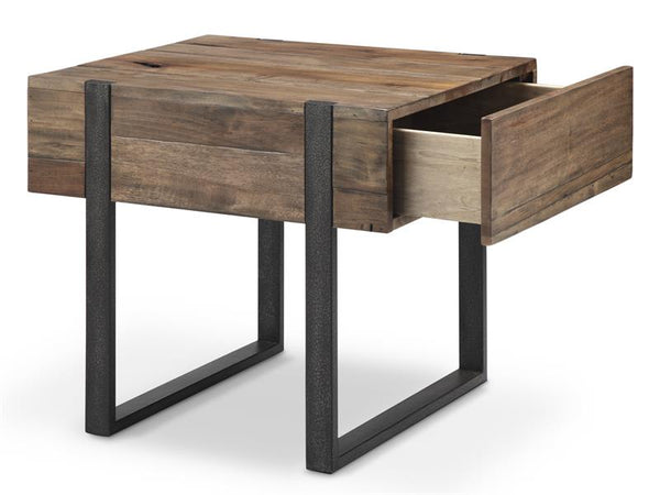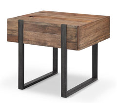 PTR: 085218 Table de bout Prescott. La conception industrielle et simple, met en valeur le bois, grâce à une finition miel rustique avec une base en fer vieilli. La collection Prescott...