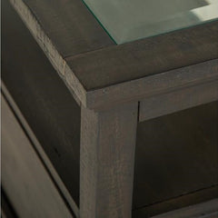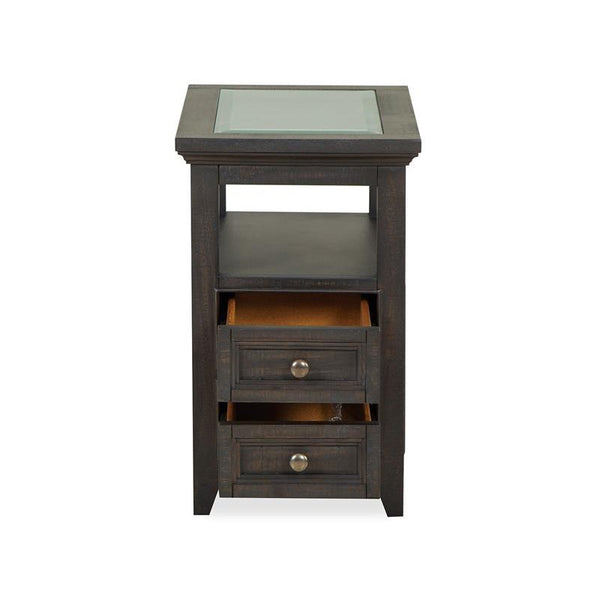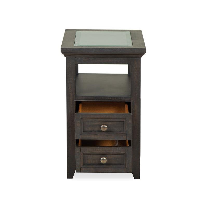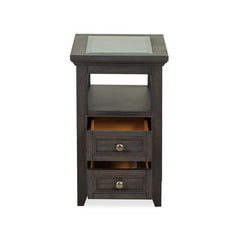 Table de bout rectangulaire de la collection Westley Falls par Magnussen®  (Ref: 097754) Dimension: 15"L X 24"P X 24"H Conception et caractéristiques : Verre clair trempé de 5 mm avec insert biseauté...