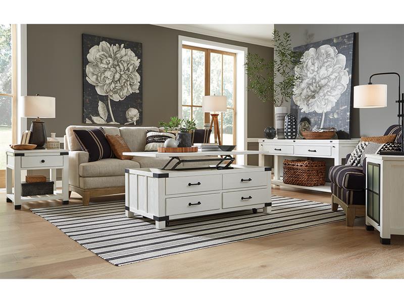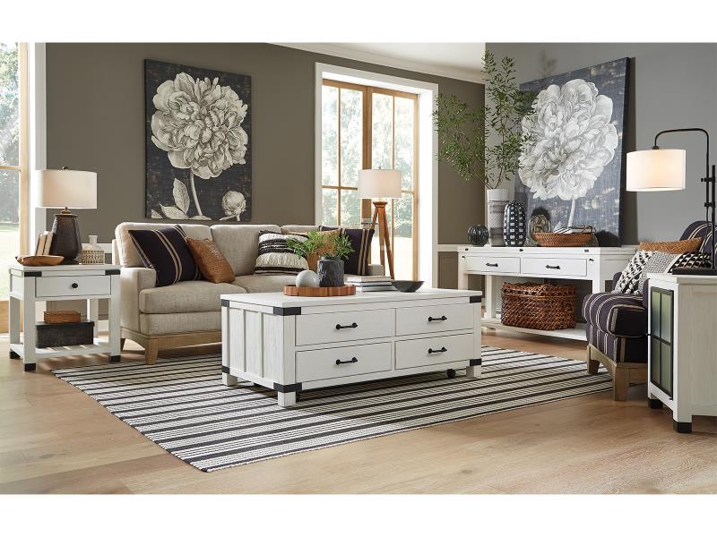 La fraîcheur de la ferme rencontre le chic industriel dans la collection Harper Springs de Magnussen®. La construction en planches et lattes évoque les détails architecturaux des fermes des XIXe et XXe siècles, et les motifs de vitres en verre texturé sur les pièces clés sont inspirés des fenêtres en métal noir des fermes classiques et des usines récupérées.