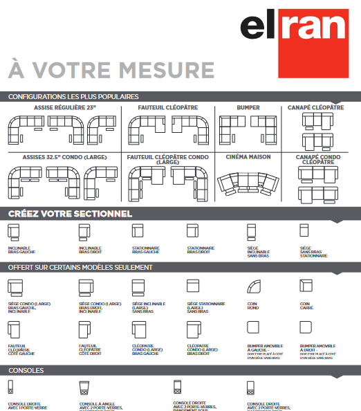 Elran®, entreprise fièrement québecoise, conçoit des produits confortables et sur mesure, qui s'agenceront à tous les décors. Avec le sectionnel Colton, vous serez enveloppé par le confort et la beauté. Fier de son savoir-faire légendaire, sa fabrication de qualité et sa garantit à vie limitée sur la structure et le mécanisme, Elran®partagera votre quotidien pour les années à venir.