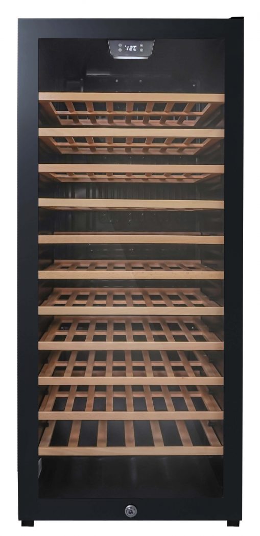 Gardez votre collection de vin parfaitement refroidie et joliment présentée dans ce refroidisseur entièrement noir avec ses étagères en bois de hêtre naturel. Cette unité dispose également d'une porte réversible qui peut être ajustée pour une ouverture à gauche ou à droite, et d'une serrure pour sécuriser son contenu ! Soyez tranquille grâce au fonctionnement silencieux de ce magnifique refroidisseur et à la couverture de 12 mois pour les pièces et la main-d'œuvre.