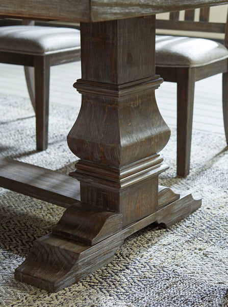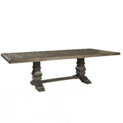 Inspiré par les meubles d'antan, massif est convivial. Le style de cette table de salle à manger avec rallonge, transpose brillamment le passé dans le présent. Séduisante avec sa finition de couleur pin vieilli et la texture légèrement brossée, elle donnera à votre coin-repas un style riche. Grâce à sa rallonge et sa base double ceux qui apprécient les meubles de grande prestance seront ravis.