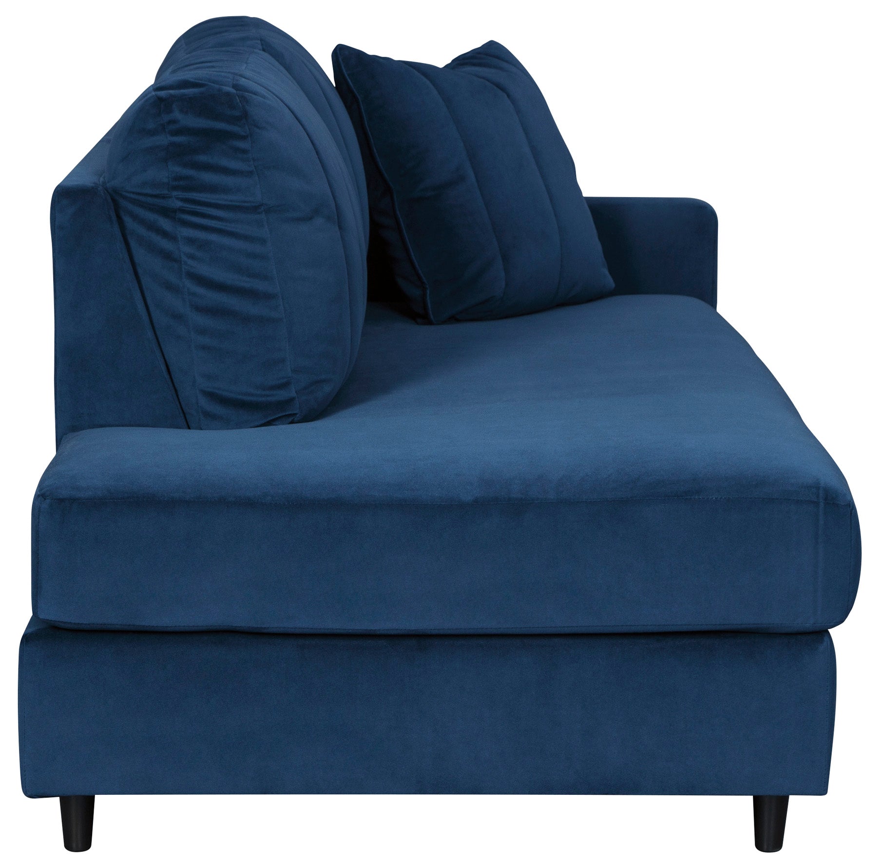 PTR: 090831 Canapé en velours bleu. Une interprétation brillante du style urbain chic, cette méridienne d'angle bleu vif rend le design haut de gamme très abordable. Les éléments distinctifs comprennent des...