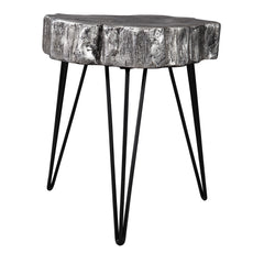 PTR: 090731 Table d'appoint au fini argent de style contemporain. Dimensions: 18.75" x 18.75" x 21.38"