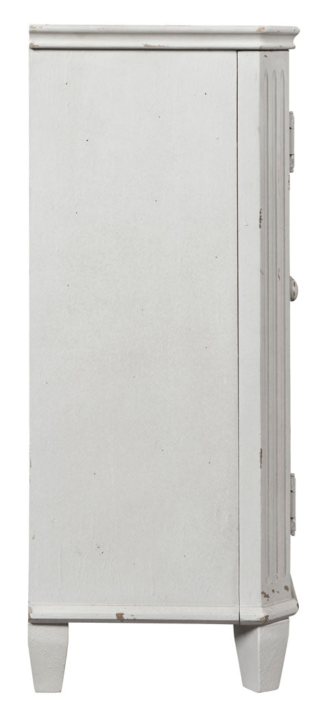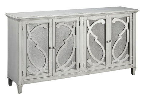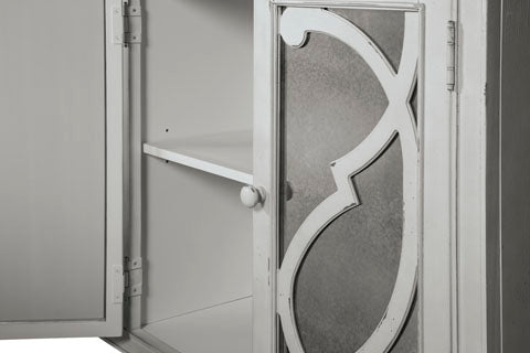 Avec sa finition vieillie rappelant une peinture antique fabuleusement délavée, cette armoire est une pièce éclectique qui conviendra parfaitement à de nombreux espaces, y compris la salle à manger, le salon ou encore l'entrée. Les portes en filigrane vitré et orné de volutes, reflètent votre bon goût et votre style. Les étagères réglables améliorent sa forme et sa fonction.