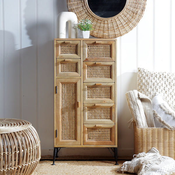 L'Armoire de rangement Mandovi est fait de bois et rotin naturel. Grâce à son look, elle trouvera une place de choix dans votre décor.