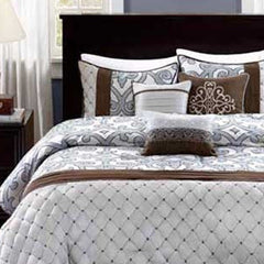 PTR : 082874 Ensemble de douillette de 7 morceaux (brun et bleu) Grand Lit (Queen) 90" x 90"