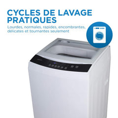 - Taille compacte : lave-linge de 3,0 pi3 à chargement par le haut, parfait pour les appartements, les maisons et les petits espaces.